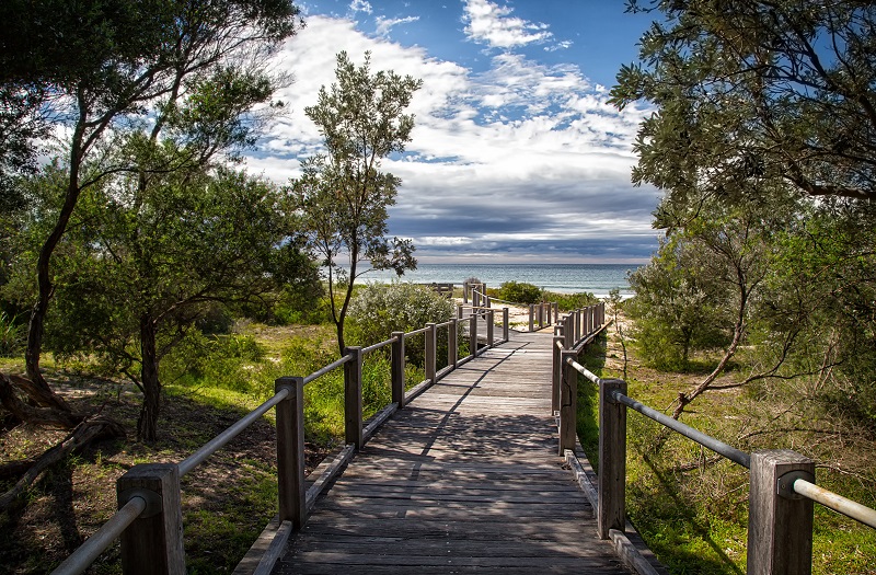Once you’ve lugged a day’s worth of beach gear down to the water, you’ll be delighted to find that it’s usually calm, flat and shallow, perfect for wading and digging for hermit crabs. All that playing and swimming helped you work up an appetite? Head over to the sweet little Blue Swimmer café for coffee and a bite to eat.